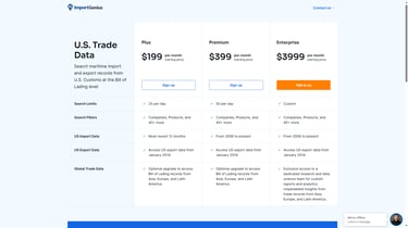Pricing starts at $149 per month for access to a single country's trade data, with higher plans offering more extensive data coverage and additional features.