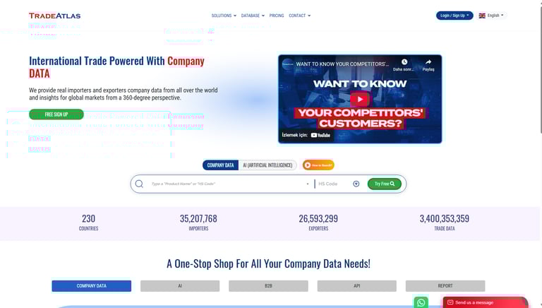 TradeAtlas is a digital platform that provides detailed importer and exporter company information collected from 50+ countries, utilizing artificial intelligence to identify suitable importers and forecast potential markets.