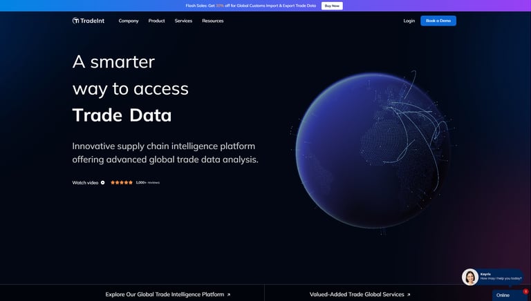 TradeINT is a trade intelligence platform that provides global import and export data, helping exporters and international traders find new opportunities and analyze market trends.