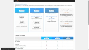 Pricing details are not publicly listed; interested users are encouraged to contact SteelOrbis directly for subscription options and tailored plans.