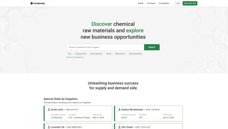 CheMondis is a specialized B2B marketplace for the chemical industry, connecting buyers and suppliers of chemicals worldwide.
