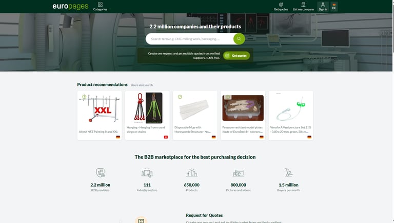 Europages is a B2B directory that connects exporters, manufacturers, and suppliers with buyers across Europe and beyond.