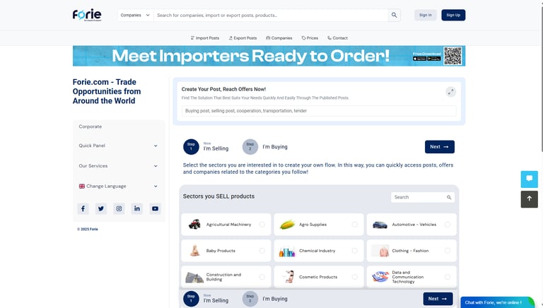 Forie.com is an online B2B trading platform that connects exporters and importers worldwide, allowing companies to showcase products and respond to global trade demands.
