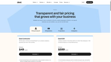 Pricing starts at $49 per contractor per month, while Employer of Record (EOR) services begin at $599 per employee per month.