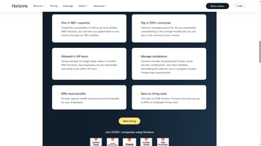 Horizons enables exporters to hire international employees without setting up a local entity, handling global payroll, taxes, and compliance.