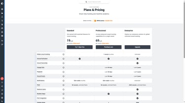 The Standard Plan starts at $19 per month, billed annually, offering essential vessel tracking features. The Professional Plan costs £59 per user/month, providing advanced functionalities such as notifications, fleet management, satellite tracking, and voyage data.