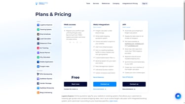 Pricing starts at €29 per user/month, with options for prepaid credits and enterprise plans for larger logistics operations.