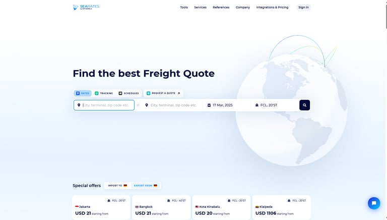 SeaRates is a comprehensive online freight marketplace that enables exporters and international traders to compare shipping rates, book cargo transportation, and track shipments across sea, air, and land.