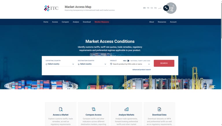 The basic version is free, while full access to advanced features requires a subscription through the International Trade Centre (ITC).