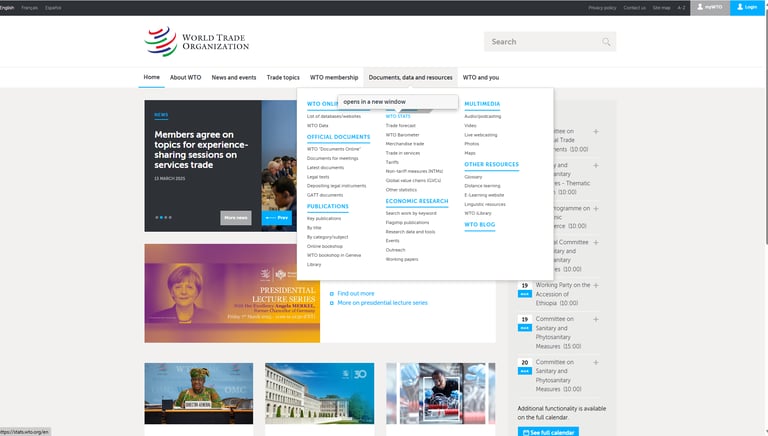 WTO Stats is the official statistical database of the World Trade Organization, offering comprehensive trade data on goods, services, and tariffs.